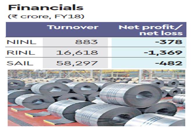 Neelachal Ispat Nigam is a joint venture company of MMTC, which holds 49.78%, while the Industrial Promotion & Investment Corporation of Odisha (IPICOL) holds 15.29% in the firm. The bulk of the remaining 34.93% stake in NINL is held by central PSUs. NINL incurred net loss of Rs 378 crore, while RINL incurred a net loss of Rs 1,369 crore in FY18 due to slowdown in the industry.