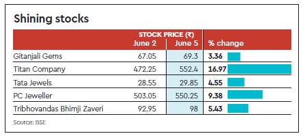 Apart from Titan and PC Jeweller, Tribhovandas Bhimji Zaveri, Tata Jewels and Gitanjali Jems were among the biggest gainers. The price of these stocks rose anywhere between 3 and 17 %.