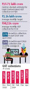 During 2018-19, the average GST collection per month was `98,114 crore and the year before, the average was `89,884 crore.