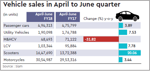 Sales of commercial vehicles were up 1.44% to 56,890 units in June. Vehicle sales across categories registered an increase of 1.26% to 1,818,829 units from 1,796,172 units in June 2016.