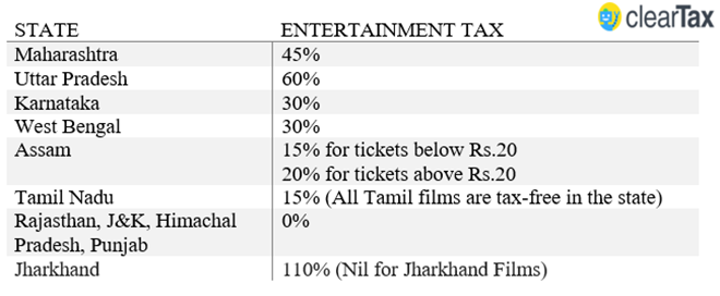 Earlier, the entertainment tax was levied by states and the rates ranged from 0 to 110%, with an average of 30%.