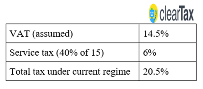 The service tax earlier (pre-GST) was 15%, and the entertainment industry enjoyed an abatement of 60% on service tax, i.e., only 40% of the 15% service tax had to be paid. So, the total tax under the VAT regime was: