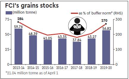 The absence of a transparent liquidation policy has resulted in India accumulating foodgrains 2.7 times the buffer norm in its official reserves after a gap of six years (see chart). This happens at a time when the farm distress is continuing and there is mounting pressure on the state governments to buy grains at the minimum support prices.