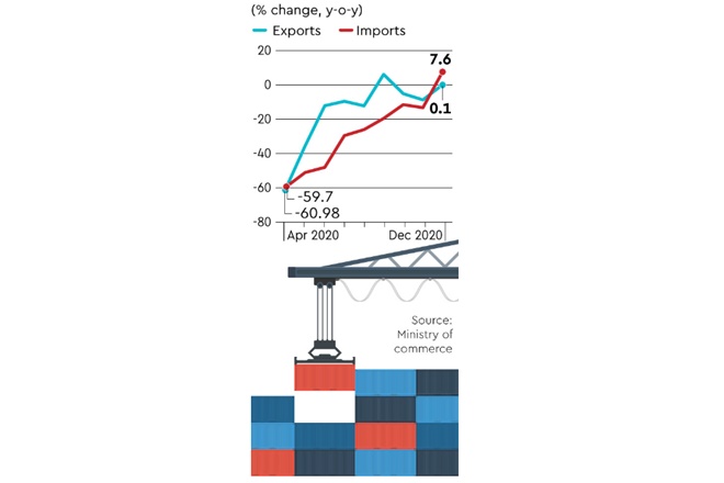 Merchandise exports inched up in December, for a second time since February 2020, while imports advanced for the first time in 10 months, suggesting a gradual return towards normalcy.