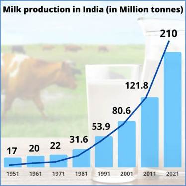 It is a 51 per cent growth when compared to 2014-15. At that time milk production was 146.31 million tonnes. The source of the data is the Ministry of Fisheries, Animal Husbandry and Dairying, Government of India.