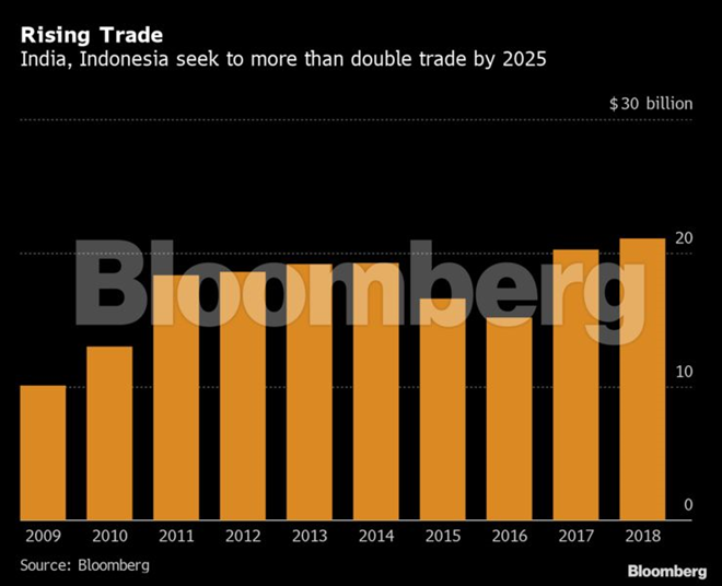 In a sign of warmer ties between India and Indonesia, Prime Minister Narendra Modi and President Joko Widodo exchanged visits this year. The two commodity heavyweights have set a target to double trade to $50 billion in 2025.