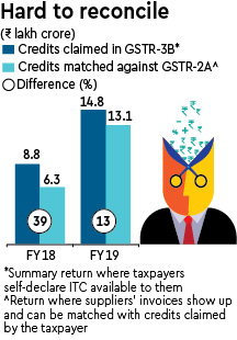 An analysis by the GST department showed that as much as 39% or Rs. 2.5 lakh crore of ITC claimed by taxpayers in FY18 remained unmatched with the invoices uploaded by their suppliers. Though the gap had come down to 13% (Rs. 1.7 lakh crore) in FY19, it was still very large and unacceptable to the department.