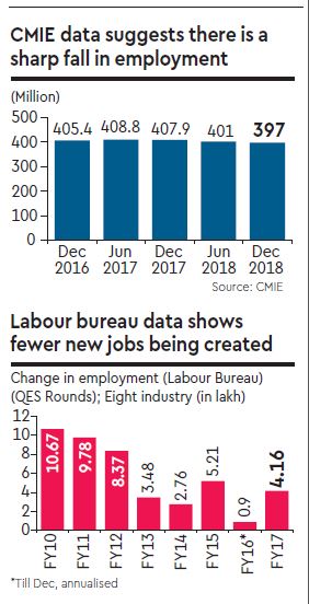 No one issue probably dominates the narrative on the performance of the NDA government as much as jobs. Rightly or wrongly, the NDA tenure has been described as a period of ‘jobless growth’. It is not simply that automation in manufacturing is taking away jobs, the very sluggish activity in construction and real estate has meant fewer opportunities for temporary workers even as the government’s investments in infrastructure—especially roads—would no doubt have provided workers with temporary jobs.
