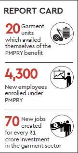 The special package for the garment sector unveiled by the Modi government in June last year doesn’t appear to have made instant appeal to the firms in this labour-intensive industry. Despite a crucial component of the package that the government will bear the entire 12% employer’s contribution to the employees provident fund (EPF) for the first three years, just 20 units have availed themselves of the benefit so far and only 4,300 people have got jobs. Under the Pradhan Mantri Rozgar Protsahan Yojana, the government bears 8.33% of the employer’s contribution to EPF in other sectors.