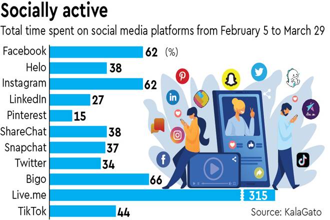 Data also points likewise. A recent report by data intelligence firm KalaGato shows that the average time spent on Facebook and Instagram went up by 62%, while TikTok saw a 44% surge, LinkedIn a rise of 27% and the time spent on Twitter increased by 34% between February 5 and March 29.