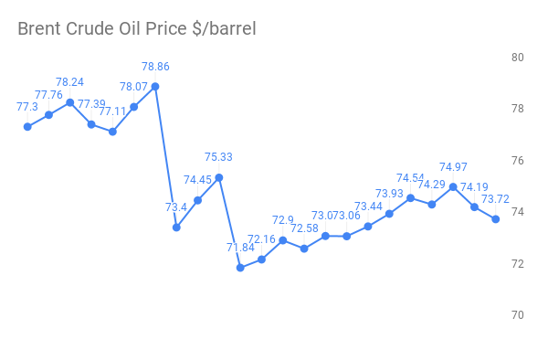 The government had earlier said that India has the capacity to comfortably handle oil prices up to $60 a barrel, and to bear the shock if it stays at about $68-$70. Oil prices slumping from $77-$80 a barrel to $73 a barrel is good news for India. As a result, petrol prices have fallen by about Rs 2 per litre in two months. Petrol price in Delhi has dropped to Rs 76.31 a litre on Wednesday from a record high of Rs 78.43 touched on May 29. However, oil prices need to moderate further to at least below $70 a barrel for India to be comfortably bear its impact again.