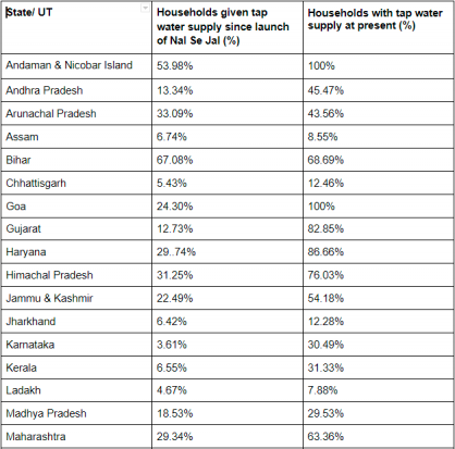 Looking at the progress made after the launch of the scheme, Telangana has the best record with water supply reaching 38.37 lakh houses or 70.99% of its target, followed by Bihar with 1.32 crore houses or 67% of its target.