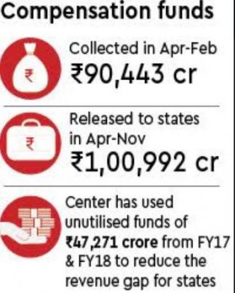 “Whatever money comes in that (compensation) fund, only that money can be paid (to states). Now, if there is a shortfall (against states’ guaranteed revenue growth of 14%) which is more than what could be overcome by compensation fund, the GST Council will take a decision on what measures can be taken to either increase the cess amount or consider the rates or take any other measure”.