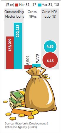 The share of gross non-performing assets (NPAs) in outstanding Mudra loans eased to 4.83% at the end of FY18 from 6.15% a year ago, according to data with Micro Units Development & Refinance Agency (Mudra).