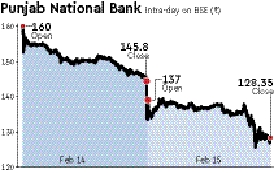 Since the issue came to light on Wednesday, shares of PNB on the BSE have fallen 20.6% to Rs 128.35. This has led to an erosion of about Rs 8,077 crore of shareholder wealth. PNB’s market capitalisation was Rs 31,132 crore on Thursday against Rs 39,210 crore on Tuesday.