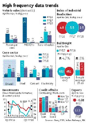Rising prices of crude oil, higher local inflation and slim chances of lower interest rates threaten to rein in the economy even as the performance in 2017-18, so far, points to a muted recovery. While the worst may be over, unless the government keeps up spending in 2018-19, the economy may see middling growth in the next few quarters. India’s GDP growth slowed to a 13-quarter low of 5.7% year-on-year in the April-June period but recovered to 6.3% y-o-y in the July-September quarter.