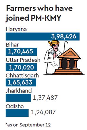 So far, only six states, including Jharkhand and Odisha, have recorded over 1 lakh farmers’ registration while 3.98 lakh joined in Haryana, followed by Bihar and Uttar Pradesh (1.70 lakh each) and Chhattisgarh (1.66 lakh).