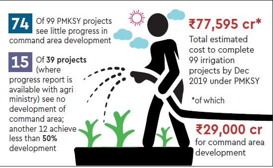 According to the guidelines for PMKSY, the motto of which is ‘Har Khet Ko Paani’ (water for every agricultural land by providing end-to-end solutions in irrigation supply chain), the completion of a project includes development of command area besides the main canal and its branches.