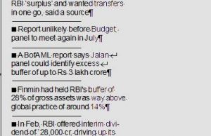 A recent report by Bank of America Merrill Lynch said the Jalan committee could identify an excess buffer of up to Rs 3 lakh crore (or roughly 1.5% of the GDP), including the excess capital in contingency reserves and revaluation reserves. Halving of the contingency reserves of the RBI will release Rs 1.28 lakh crore, the report said, adding the level would still be 50% higher than what central banks of the BRICS nations have. Similarly, halving the yield cover hike will release another Rs 1.17 lakh crore, it added.