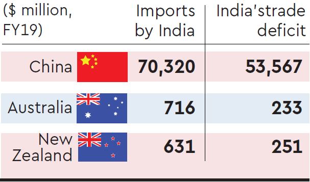 Even without the deal, India’s merchandise trade deficit with China was as much as $53.6 billion in FY19. New Delhi wanted to link meaningful market access from Beijing in key sectors — including IT, pharma and agriculture — to its endorsement of an RCEP deal. India’s overall merchandise trade deficit widened to $176 billion last fiscal from $162 billion a year before.