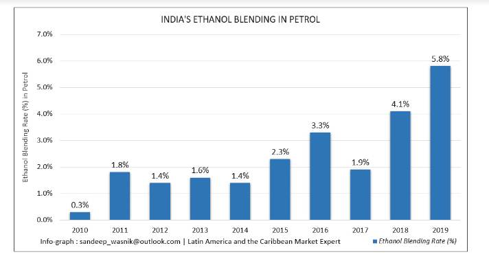 Ethanol blending with petrol is pegged to touch 7 per cent as shown in info-graph.