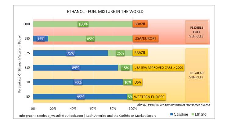 Now, the Indian Automobile sector not only needs to focus on Electric Vehicles (EVs) but also on Flexi-fuel engine. Today, nearly 44.8 million cars are running on Brazilian road, where 75 per cent of the total can run on a mixture of ethanol and gasoline due to its flexible fuel engine. Brazilian flexible-fuel vehicles are optimized to run on any mix of E20-E25 gasoline (E20 contains 20 per cent ethanol and 80 per cent gasoline, while E25 contains 25per cent ethanol) and up to 100 per cent hydrous ethanol fuel (E100). On the other hand, Indian Automobile sector needs to work on the flexible-fuel engine or flexible-fuel-vehicles technology and safety, which is also helping to reduce greenhouse gas emissions and reduce the hiking in fuel price trend.