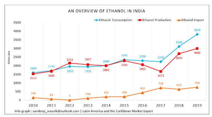 In 1975, National Alcohol Programme, “Proálcool” was introduced by the Brazilian government, after the introduction of this programme, within 6 years; nearly 90 per cent of all the new vehicles sold in the country could run on ethanol. Proálcool programme accelerated ethanol production and today Brazil has become the second-largest ethanol producer in the world. End of December 2019, nearly 34.45 billion litres ethanol production has been estimated in Brazil.