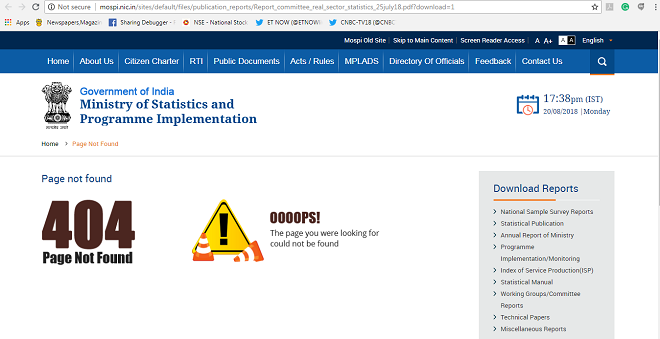 The ‘Committee on Real Sector Statistics’ report, which calculated back series GDP data, is no longer accessible on the earlier URL of the website of the Ministry of Statistics and Programme Implementation (MOSPI). FE Online has learnt that the report has been moved to a different URL, with the addition of a disclaimer.