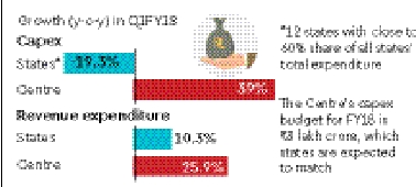Of course, the capital outlay contraction by the dozen states reviewed by the rating agency is partly on account of the delayed budget presentation by Uttar Pradesh and Punjab, which went to polls in February; excluding these two states, the capex of the remaining 10 states rose by a modest 6.2% in Q1FY18, sharply lower than 45.9% in Q1FY17.