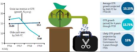 The Centre’s actual tax revenue growth has been below what the 14th Finance Commission envisaged.