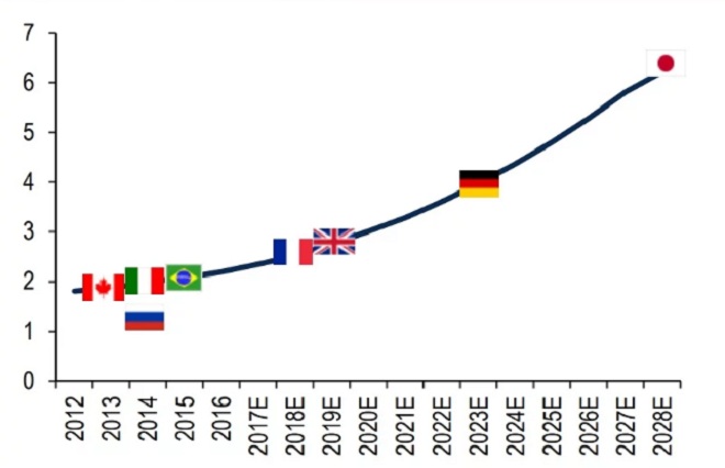 As the chart shows, India has already surpassed Canada, Italy, Russia, Brazil and very soon. By leaving Brazil and Russia behind, India has emerged as the second largest BRIC economy after China and is well on track to cross France and Britain to emerge as the world’s fifth largest economy after Germany by 2019, and by 2028, Japan. The report titled, ‘India 2028: The last BRICK in the Wall’, said falling dependency ratios, financial maturity and increasing incomes and affordability are the three key drivers for the country to stand among the large emerging economies.