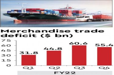 Merchandise trade deficit in the second half of FY22 grew dramatically, especially in the third quarter, as domestic demand had rebounded sharply before the Omicron onslaught in January, pressuring the current account. From as much as $60.6 billion in the third quarter of FY22, goods trade deficit eased in the March quarter but still remained elevated at $55.4 billion. This was way above the deficit of $31.8 billion in the first quarter of FY22 and $44.8 billion in the second quarter. Nayar expects the CAD to recede under $20 billion in the March quarter from $23 billion (2.7% of GDP) in the previous three months.