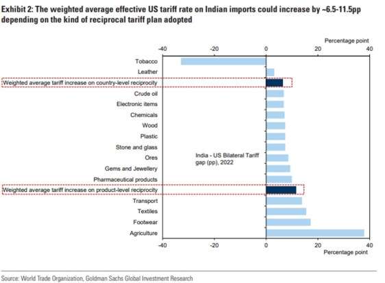 c) Reciprocity including non-tariff barriers like administrative barriers, import licenses, export subsidies, etc. This, according to Goldman Sachs, is the most complicated given the cost of estimating non-tariff barriers, but could presumably lead to higher tariffs than in other two scenarios.
