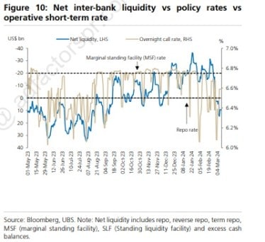 She explained that the headline CPI inflation is expected to “decelerate below 5%YoY in March and soften further below 4% in September quarter on gradual easing in food prices (assuming normal monsoons) and comfortable core inflation.” Given the fact that the liquidity conditions have improved over the last two weeks, “the frictional liquidity conditions may tighten over the coming weeks on advance tax outflows and increase in currency in circulation ahead of general elections,” she added As a result, they expect RBI to “continue fine-tuning system- liquidity to ensure overnight rates ease closer to the repo rate.”