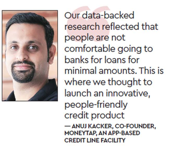 “Our data-backed research reflected that people are not comfortable going to banks for loans for minimal amounts—anywhere between Rs 3,000 and Rs 2 lakh. On the other hand, asking for money from family and friends always has an embarrassment factor. This is where we thought to launch an innovative, people-friendly credit product that could be tapped in times of need,” says Anuj Kacker, co-founder of MoneyTap.
