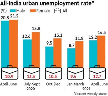 If nearly one in four of urban males of the above age group in the labour force remained unemployed in the April-June period of 2021, nearly 31% females were jobless during the same period.