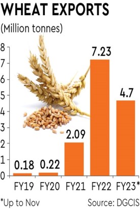 The government will likely review a ban on wheat exports in March 2023 when it will have greater clarity on the harvest of the key winter-sown crop, official sources told FE.