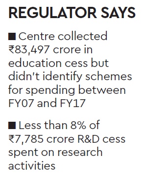 The matter of non-creation of a reserve fund in public account and non-identification of schemes was raised in the previous years’ report but the trend is persistent, it added. The top government auditor also expressed concern that even though Rs 7,885 crore was collected through the research and development cess during FY97 to FY17, only Rs 609 crore (7.73%) was utilised towards the objectives of levying the said cess.