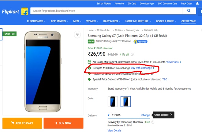 E-commerce giant Flipkart has floored an amazing offer that will make your new year start with a bang! If you are looking forward to switching from your old mobile handset, then no better time than this. Flipkart is offering a whopping discount on the popular Samsung Galaxy S7. A discount of Rs 19,010 is being offered on the device, which is currently, priced at Rs 46,000. This makes the price of the handset – Rs 26,990. But that’s not it. You can avail an additional discount too. Customers can also get up to Rs 18,000 off in exchange for an older smartphone. This means a customer can purchase the Samsung Galaxy S7 from Flipkart, for as low as Rs 8,990. The consumers are also given the freedom of choice of colour along with the discounts. You can buy the phone for such low price in these colour variants – Black Onyx, Gold Platinum and Silver Titanium.