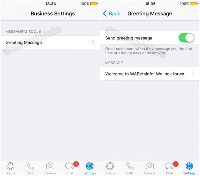 The Greeting Message feature will automatically send a message to the new customers, or to the old ones after 14 days of no activity since the first greeting message. Apart from this, the screenshots do not show any other business app-centric features such as Quick Reply, Labels etc, probably because the company is still working on them. The app will be released only after all the necessary features are added to the WhatsApp Business app for iOS.