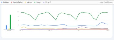 India’s economy is seeing a mix of encouraging and cautious signals in the month of July, from tumbling inflation and narrowing trade deficits to global tariff challenges. As retail inflation hits a six-year low and hopes to rise for further rate cuts, exporters are bracing for the impact of US tariffs. With India–US trade talks still underway and the deadline for a steep 26 per cent duty approaching, here are five key topics that have trended on Google over the past month.