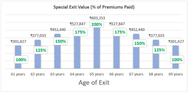 In this case, the special exit value benefit will be available from the 30th policy year to the 46th policy year.