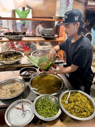 Later, under the watchful eye of MasterChef India first runner-up Nambie Marak—who hails from the Garo Hills of Meghalaya—travellers learn to fold their hands into the rhythm of Khasi cooking. Under her guidance, kyat—a dish of marinated fish with vegetables—takes shape, while dohneiiong, pork cooked in a paste of sesame seeds, simmers in iron pots. The afternoon ends with lunch on long wooden tables, the food both a lesson and a feast.