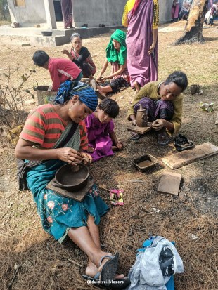 The pots are left to dry in the open sun, sometimes for several days, depending on the weather. Once hardened, they are refined by beating to achieve symmetry and smoothness, a skill that takes years to perfect. Firing is done the traditional way — in an open-air pit, known locally as an open-kin. This stage alone can take up to three or four days, the flames and smoke gradually transforming the dull grey clay into a deep, lustrous black. While still hot, the pots are treated with a natural dye made from the bark of the u dieng sohliya tree, giving them their final burnished finish — a sheen that glows like obsidian when caught in the light.