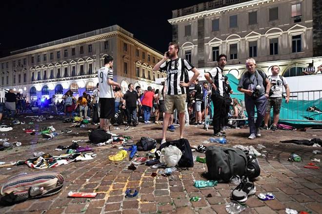 At least 1,000 people were injured, seven seriously, after a bomb scare triggered a stampede among Juventus fans watching the Champions League final in Turin, local authorities said today. AFP reporters witnessed the chaotic scenes that ensued in a packed square 10 minutes before the end of the match on Saturday evening. The panic seemed to have been triggered by fireworks being let off and one or more people shouting that a bomb had exploded -a notion that quickly filtered through the crowd. The incident compounded a miserable night for supporters of Juventus, who lost the Cardiff final 4-1 to Real Madrid.