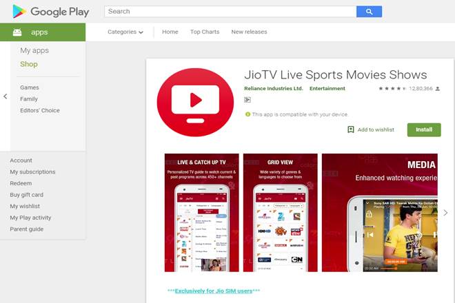 The JioTv app can be downloaded from Google Play Store.