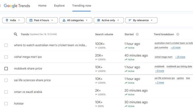 The ongoing third Test between India and Australia has set cricket fans abuzz, with Google searches for “India vs Australia Test” surging over 100,000 times. The drama unfolded on day five as Australia declared at 89 for seven in a frenetic afternoon session, setting India a target of 275 runs.