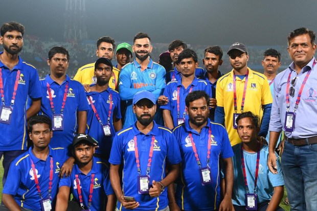 Virat Kohli with ground staff of Eden Gardens. (Image/@Cricketracker)