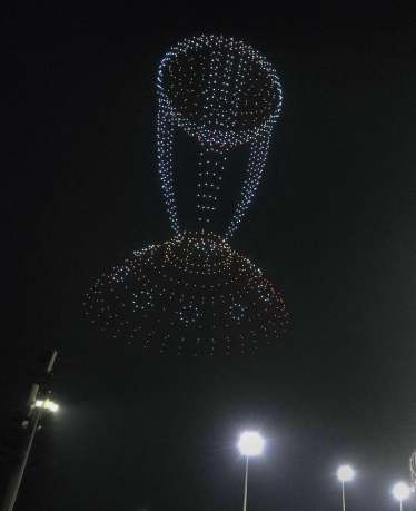 Here’s a picture of the drone show rehearsal that is taking place above the Narendra Modi Stadium in Ahmedabad on the eve of the final match between India and Australia on Saturday, Nov. 18.