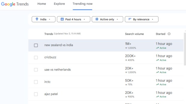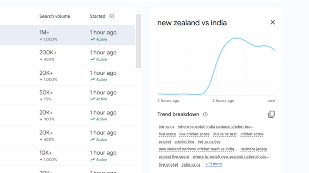 The excitement and energy surrounding the match is palpable and it is clear from the data shown in Google Trends. There are over a million search queries for ‘New Zealand vs India’ Test match. The match has been trending for the past two days but the excitement is just refusing to die down with each progressing day.